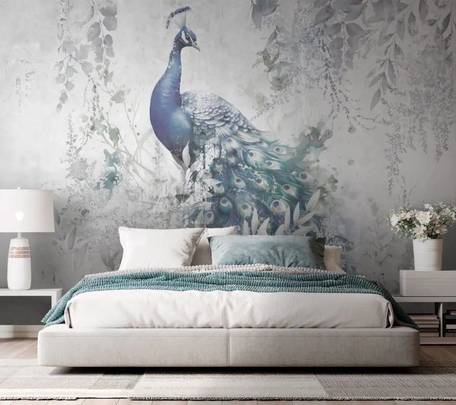 Carta da parati Pavone con piume su sfondo bianco