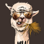 Carta da parati Un lama che indossa occhiali da sole e mangia una foglia