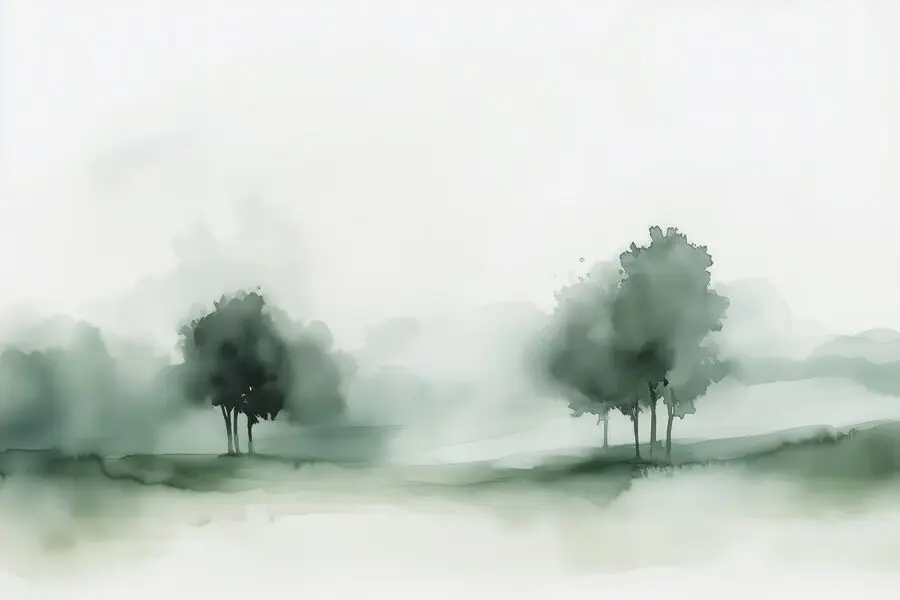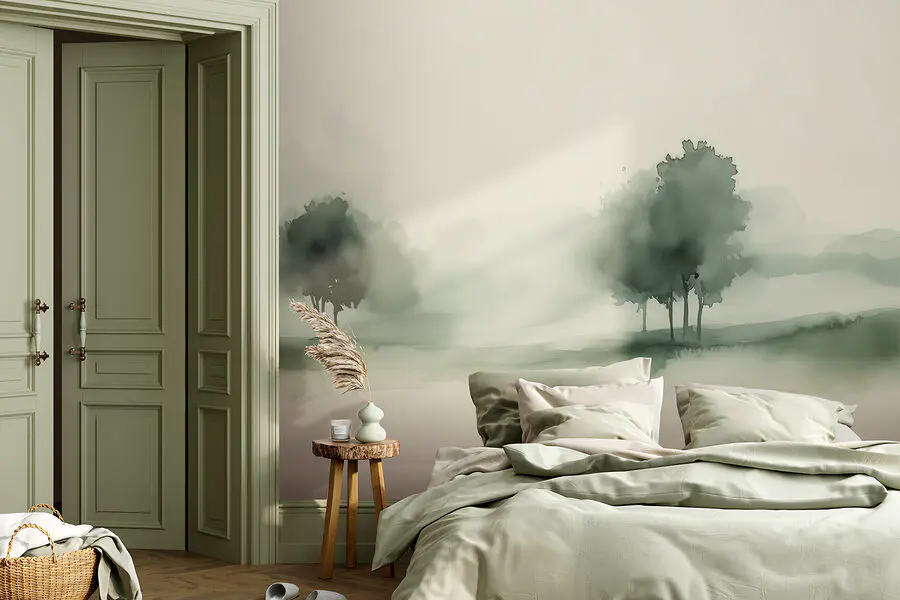 Immaginate di entrare in una stanza dove una leggera nebbia attraversa un paesaggio da sogno, sussurrando segreti a un gruppo di alberi maestosi. Questo murale invita alla serenità proprio nel vostro spazio vitale. È come se la natura avesse deciso di fermarsi per un tè, senza gli stivali infangati. Il tocco morbido dell'acquerello aggiunge un'atmosfera poetica, perfetta per rilassarsi dopo una giornata frenetica. Lasciate vagare la fantasia e magari immaginate una storia che si svolge tra quegli alberi. È un'arte che sembra un caldo abbraccio in una mattina fresca.