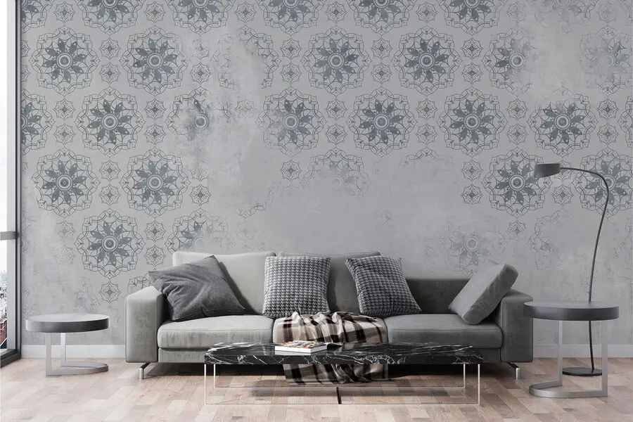 Carta da parati Carta da parati bianca e grigia con motivo