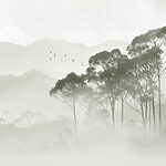 16.32 €9.80 €Carta da parati Acquerello di alberi e uccelli in volo su una foresta nebbiosa