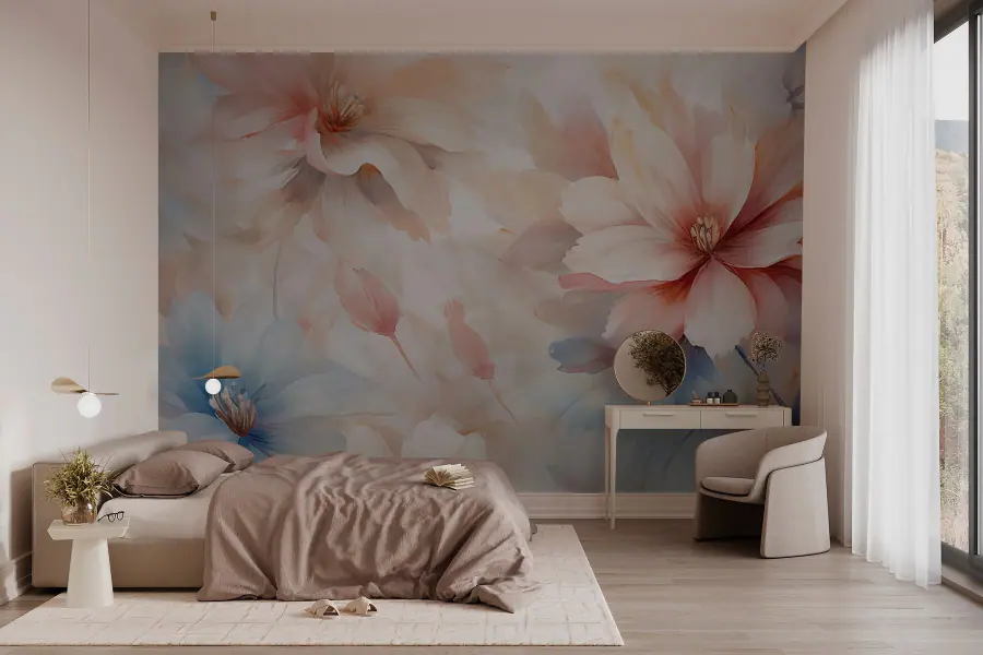 Carta da parati Fiori delicati in tonalità tenui