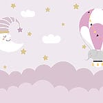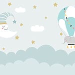 Carta da parati Cartone animato elefante e luna in un palloncino