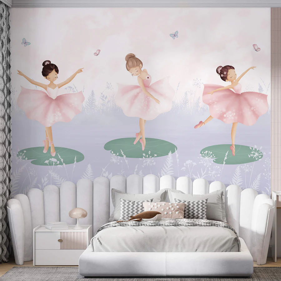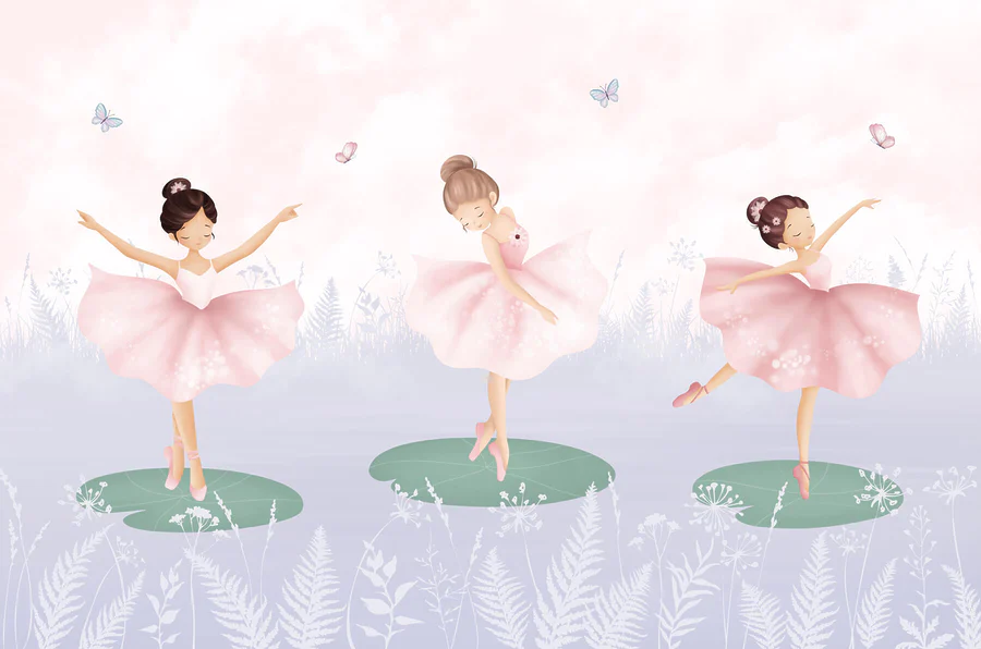 Carta da parati Gruppo di ragazze con gonne a tutù che ballano sulle ninfee