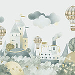 Carta da parati Pittura ad acquerello di un castello e di mongolfiere