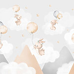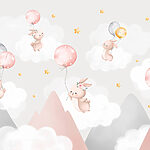 16.32 €9.80 €Carta da parati Gruppo di nuvole rosa e coniglietto con palloncini in mano