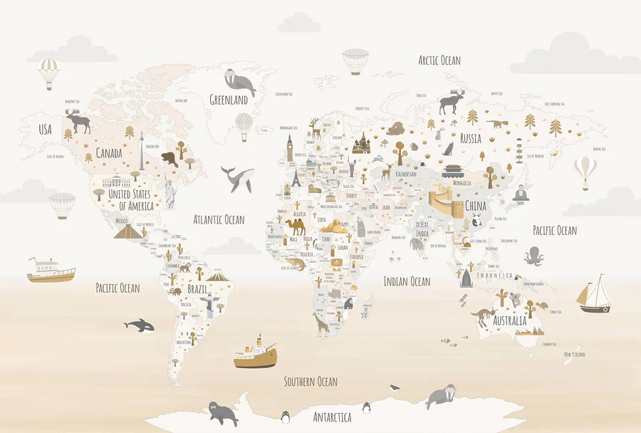 15.52 €9.31 €Carta da parati Una mappa del mondo con gli animali