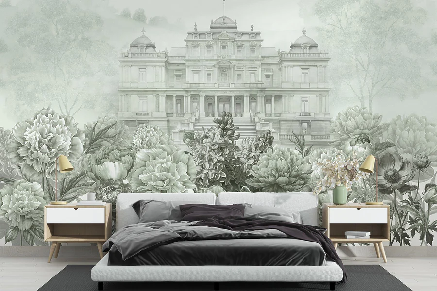 Carta da parati Grande edificio bianco con fiori