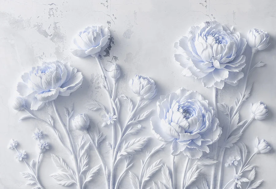 Carta da parati Fiori bianchi su una superficie bianca