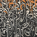 Carta da parati Arte in bianco e nero con linee arancioni e bianche