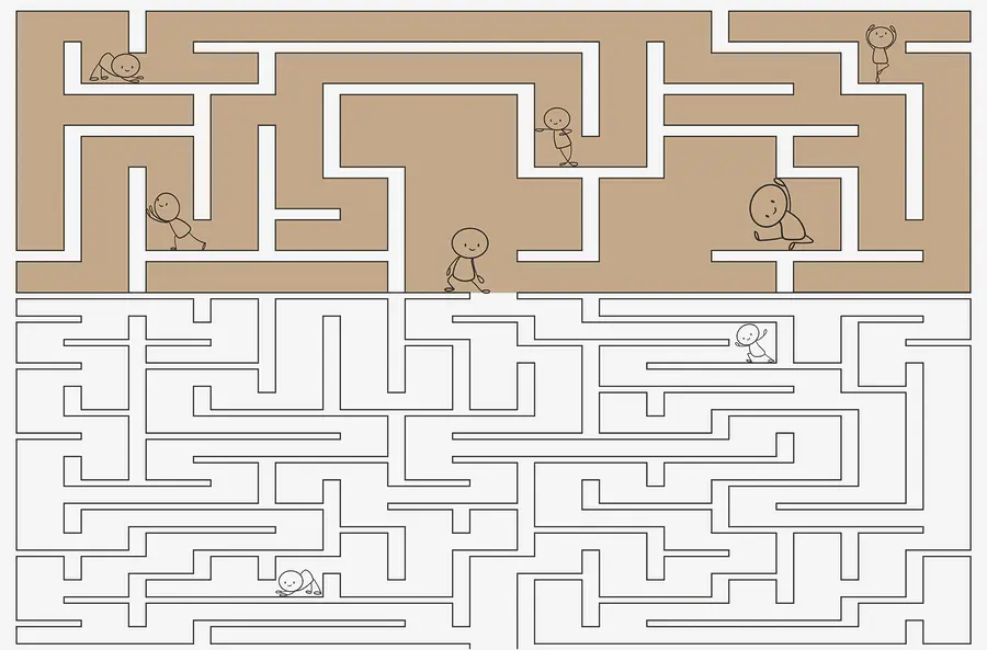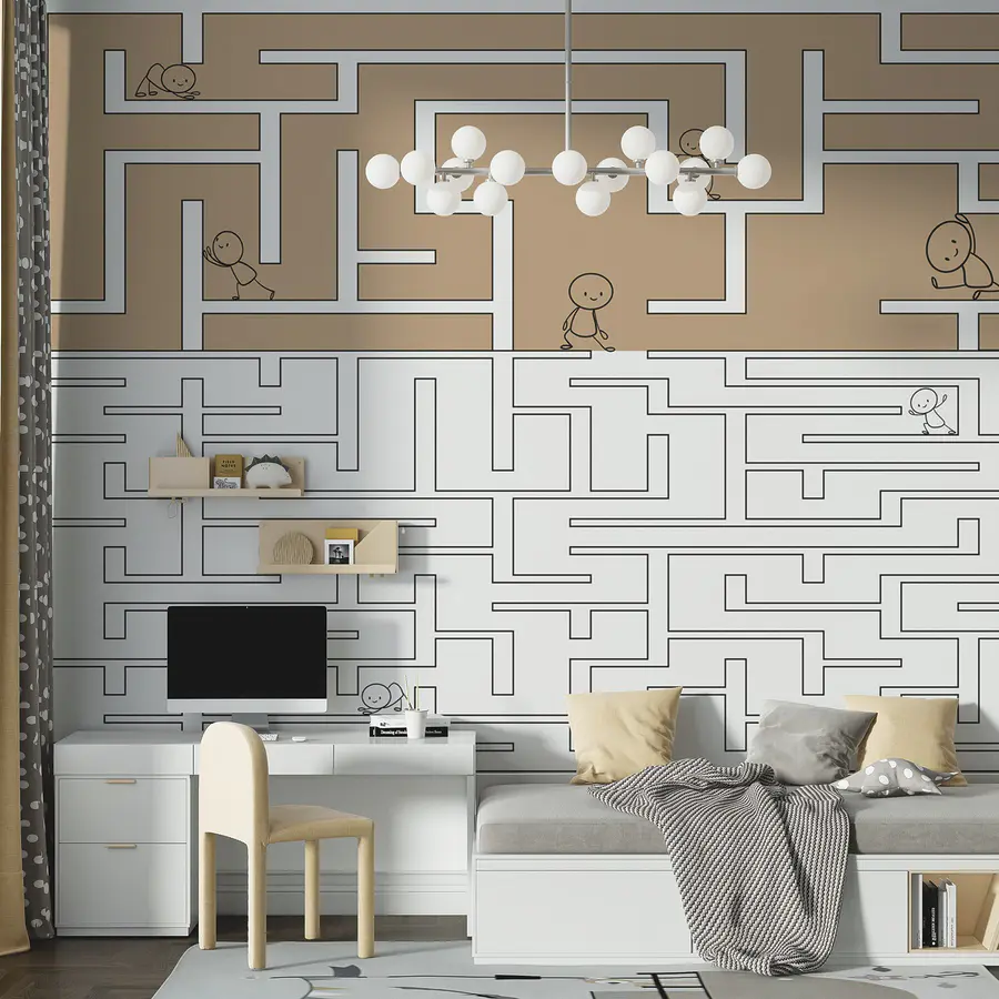 Carta da parati Gioco del labirinto con persone che camminano sul muro
