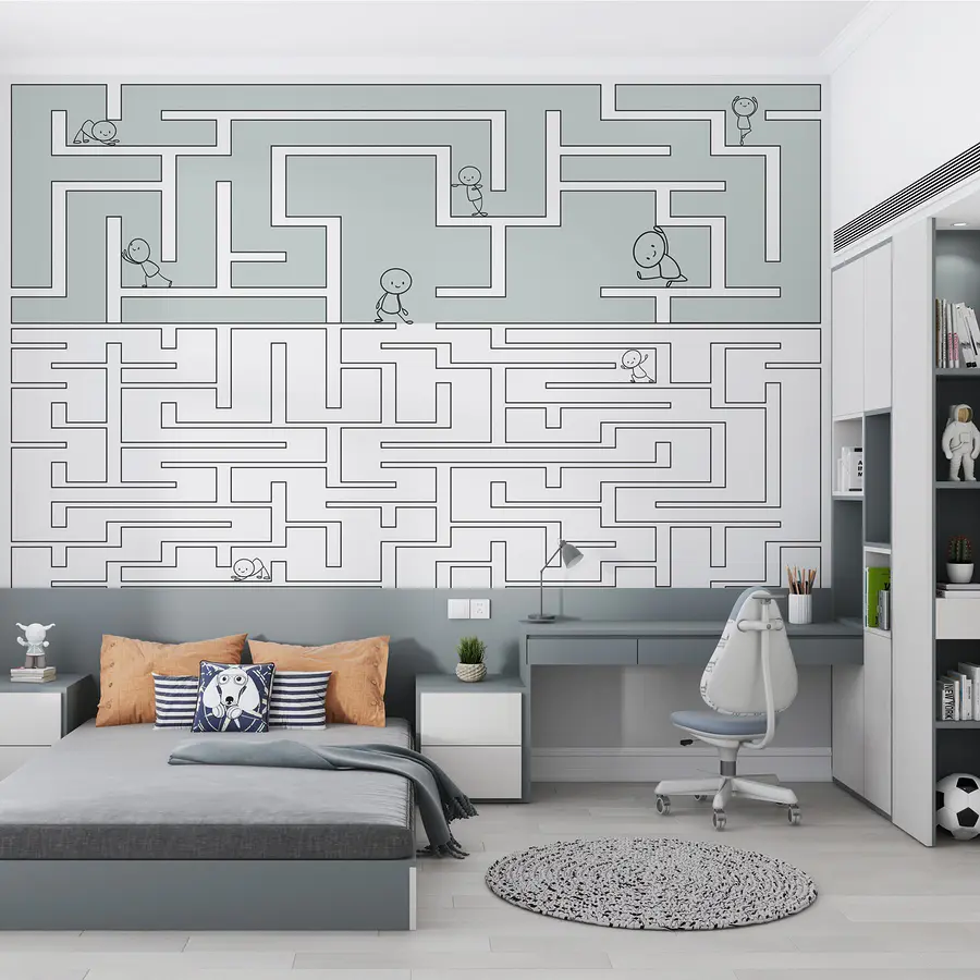Carta da parati Labirinto con persone che camminano nel labirinto