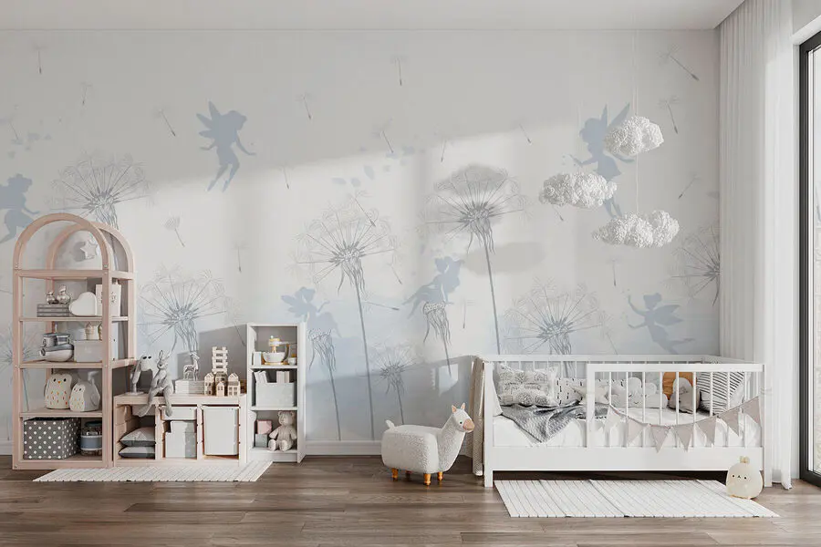 Carta da parati Un dente di leone con le fate che volano nell’aria