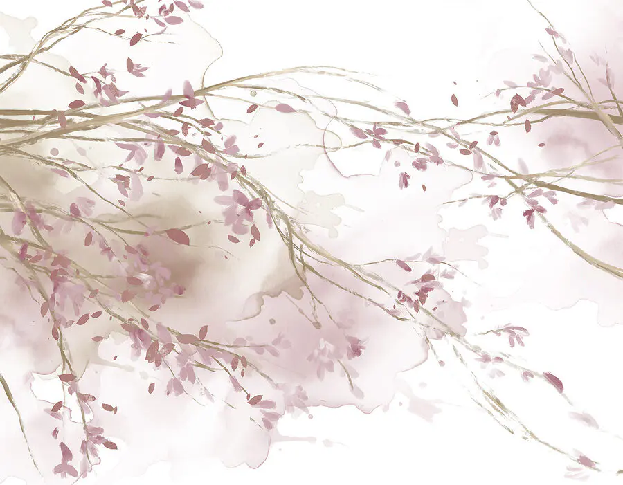 Carta da parati Acquerello di un ramo d’albero con fiori rosa