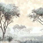 Carta da parati Paesaggio nebbioso con alberi e piante
