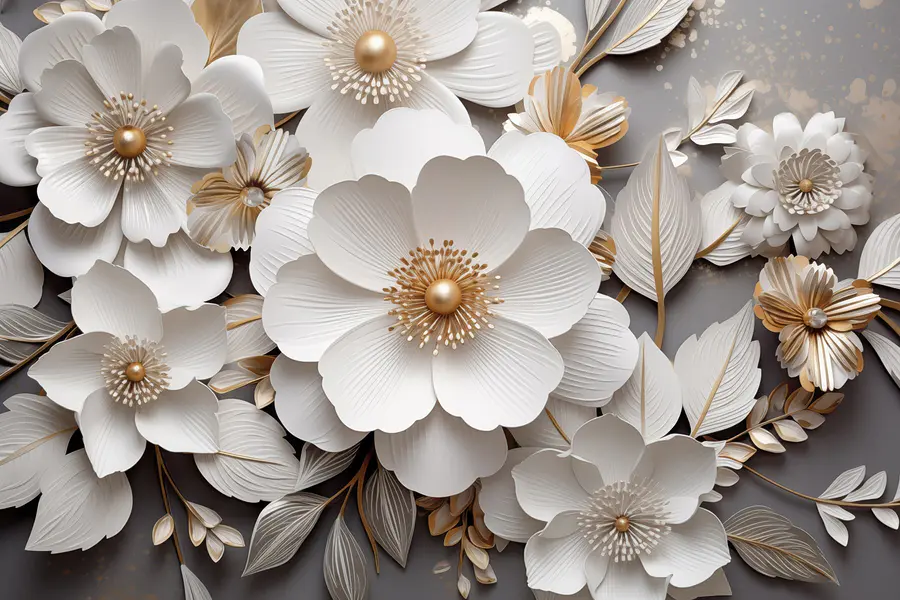 Carta da parati Eleganti fiori di carta dai toni tenui